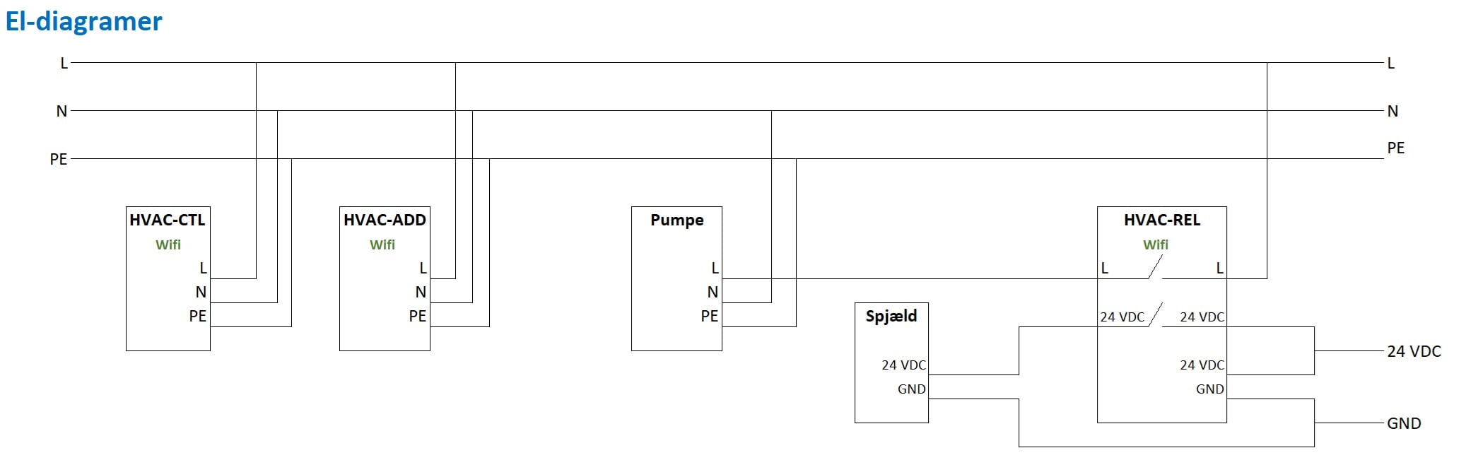 HVAC-REL relæ-boksen har to indbyggede relæer (230 V eller 24 V) til start/stop af komponenter såsom cirkulationspumper og lukkespjæld.