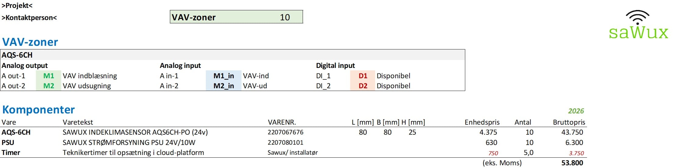 Nedenstående er udtræk fra Sawux produktvalgsberegner