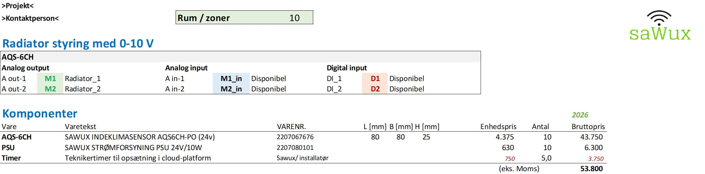 Nedenstående er udtræk fra Sawux produktvalgsberegner