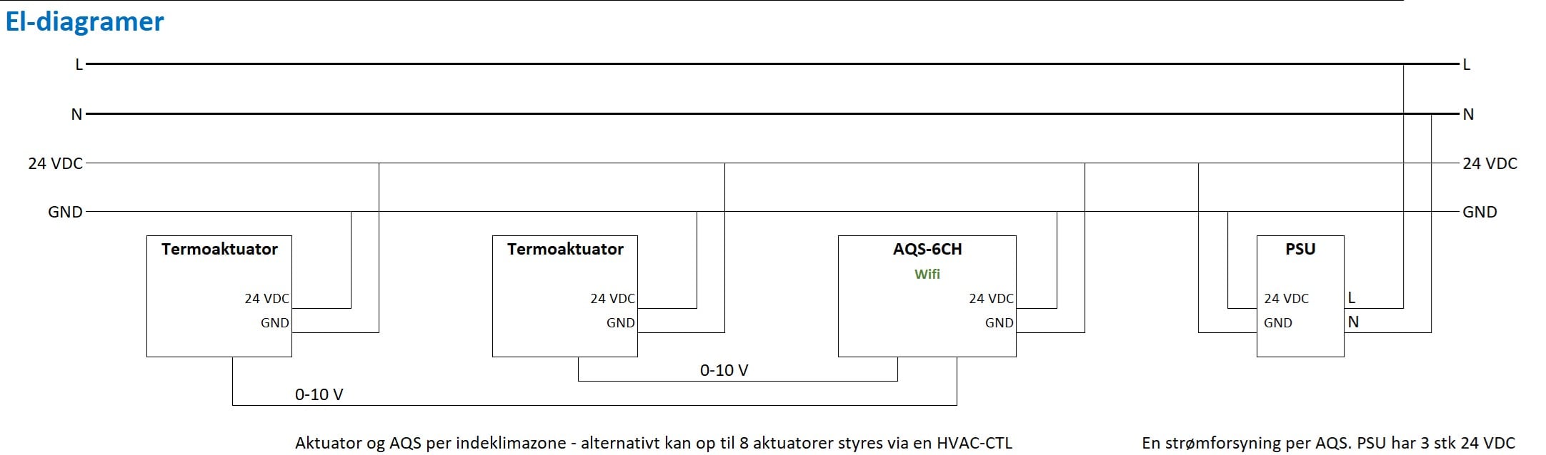 PSU strømforsyning (24 VDC) med tre udgange kan benyttes til forsyning af både AQS og termostat.