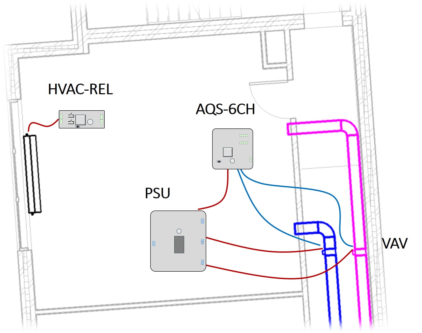 HVAC-REL styrer gulvvarme aktuator ud fra temperatur målt med AQS. Wifi opkobling til cloud-platform.