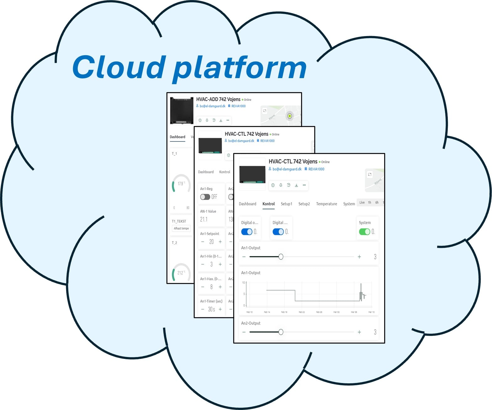 Kommunikation fra komponenter i bygningen til cloud-platformen sker via bygningens Wi-Fi.